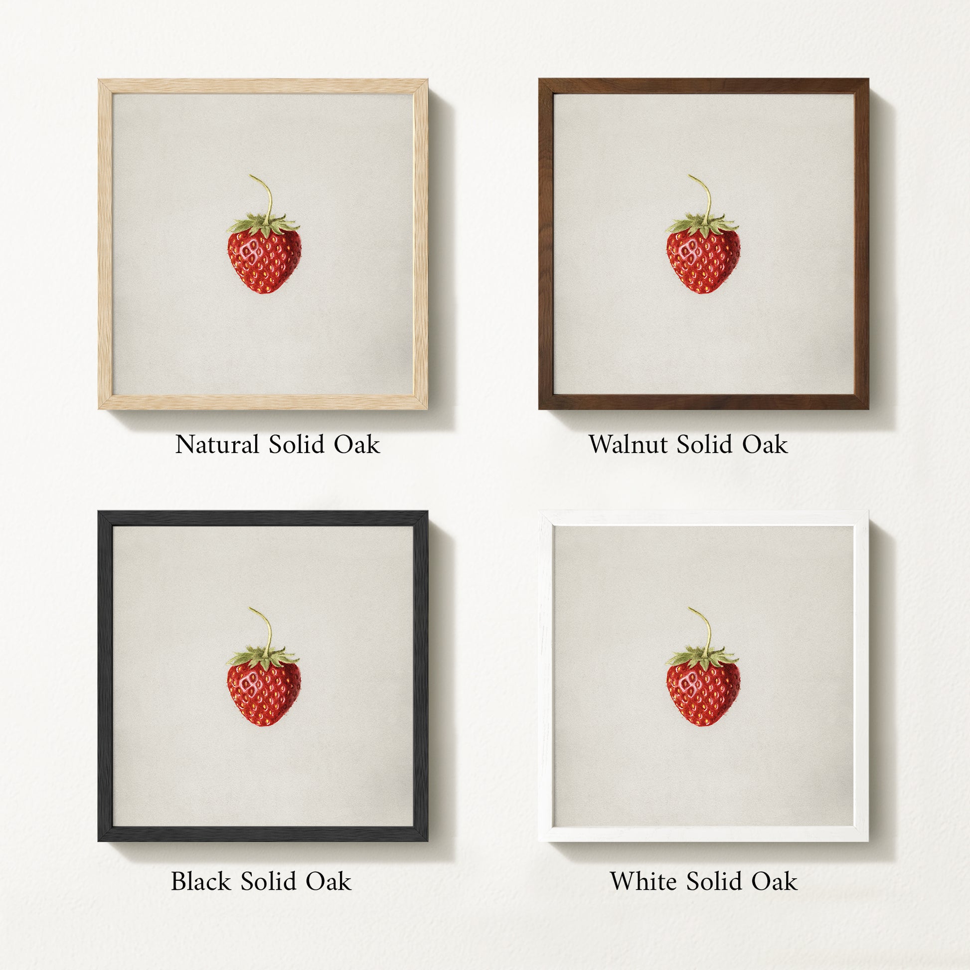 Strawberry Botanical Drawing: A single strawberry, rendered with quiet precision. This vintage botanical print recalls the elegance of 19th-century illustration, its scarlet fruit and pale background offering a study in simplicity. Framed for the kitchen, dining room, or part of a considered gallery wall, it speaks to a love of heritage and natural form. Printed on archival paper, the piece is designed to live beautifully in both modern and traditional interiors.