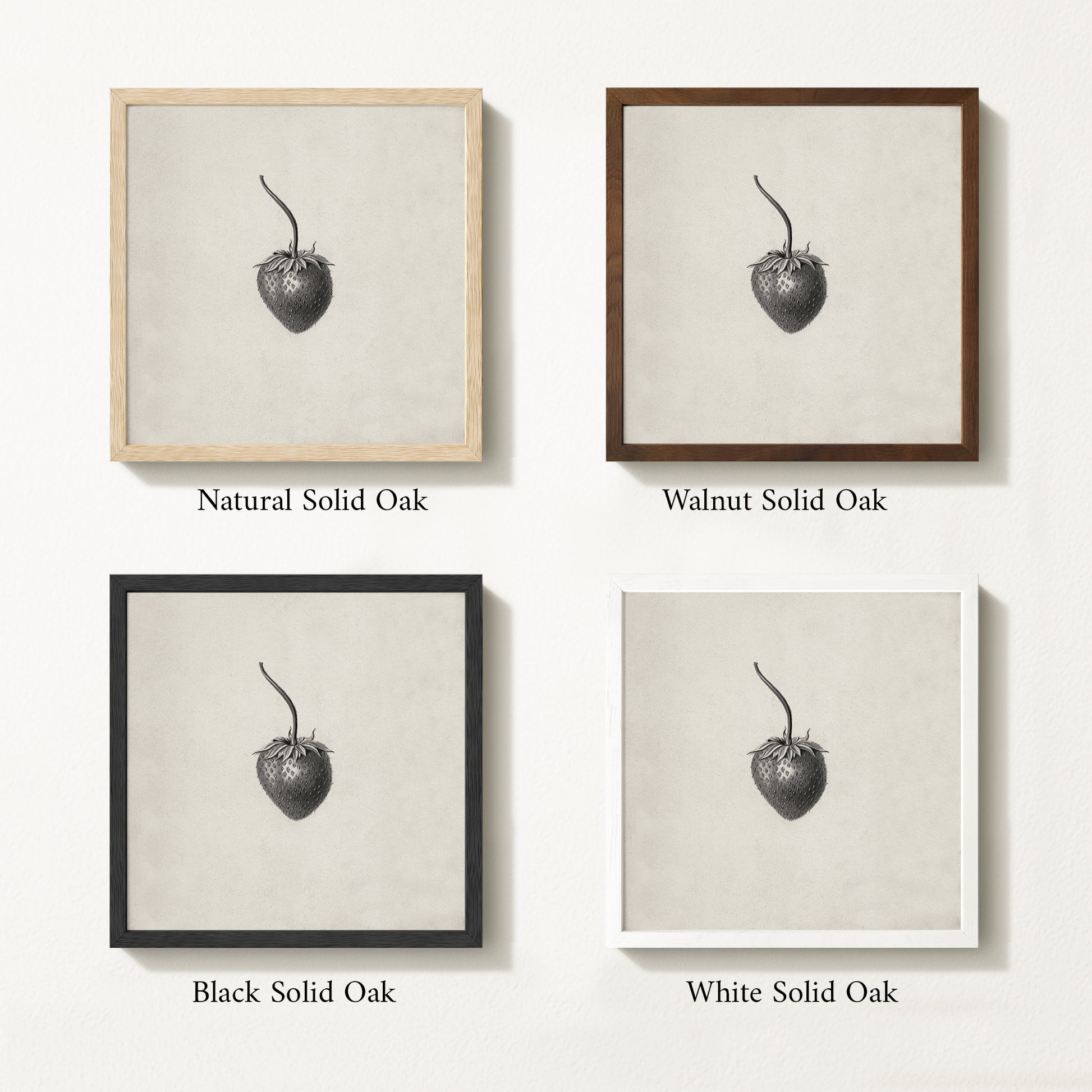 Strawberry Botanical Drawing: A single strawberry, rendered with quiet precision. This vintage botanical print recalls the elegance of 19th-century illustration. Framed for the kitchen, dining room, or part of a considered gallery wall, it speaks to a love of heritage and natural form. Printed on archival paper, the piece is designed to live beautifully in both modern and traditional interiors.